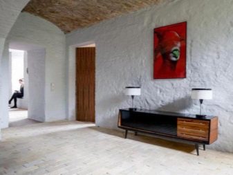 - ليس من الضروري تزيين جميع الجدران بالطوب ؛ فالجمع بين الجص والخرسانة ورقائق الجرانيت مرحب بها. ستبدو هذه الغرفة مهجورة وباردة ، ولكن هذا هو الطابع الفريد الكامل لـ “الدور العلوي”.