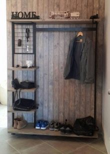 - بالنسبة للملابس الخارجية أو الشماعات أو الرفوف ، توجد الأحذية على الأرض ، على الرف ، في منضدة ، وهي أيضًا مكان جلوس ، في الركائز العمودية. مثل هذا الأثاث يشبه الصناديق من الورق المقوى..