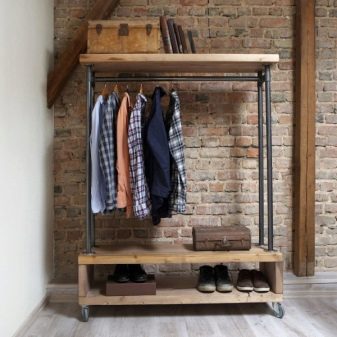 - يتم تثبيت الشماعات المفتوحة والأرفف ذات الإطار المعدني أو الأنابيب العادية. تخزن هذه الأرفف الأشياء والكتب والصناديق وحقائب السفر وغيرها من الأشياء..