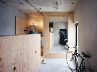 - الحد الأدنى لعدد الأقسام. في الداخل ، لا يتم تقسيم المساحة إلى مناطق وظيفية بواسطة الجدران والجص.