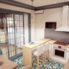 هذا هو “قلب” شقة الاستوديو بأكملها. يجب أن يكون بمساحة مقسمة ، ويجب أن يتم ترتيبه بحيث يتناسب عضوياً مع الغرفة بأكملها ، وفي نفس الوقت يفي بجميع أغراضه الوظيفية. الخيار الأول – يمكن فصل المطبخ عن باقي الشقة باستخدام قسم سيصبح في الواقع منضدة بار أو مكانًا لشرب الشاي. ولم يعد خبرًا – غالبًا ما يستخدم كمكان لتناول الطعام. ويمكن استخدام الجزء السفلي من الرف أسفل الثلاجة ، حيث يمكنك وضع ثلاجات مدمجة بالحجم المطلوب.