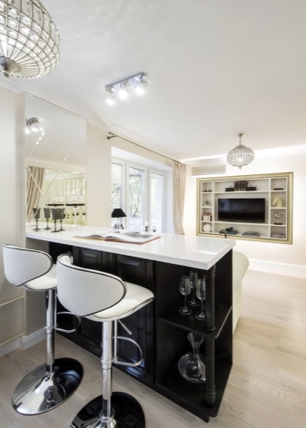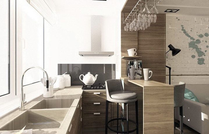 التقسيم هو النقطة الرئيسية في العمل مع المطبخ في شقة الاستوديو. باستخدام عداد شريط ، لا داعي للتفكير في شراء طاولة طعام ، فهي ستحل محلها بالكامل. خيار رائع للمطبخ في شقة الاستوديو هو نقله إلى الشرفة. يبدو للوهلة الأولى فقط أن القرار غير معقول وغريب. في الواقع ، المطبخ والشرفة مثاليان لبعضهما البعض..
