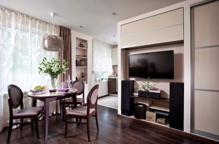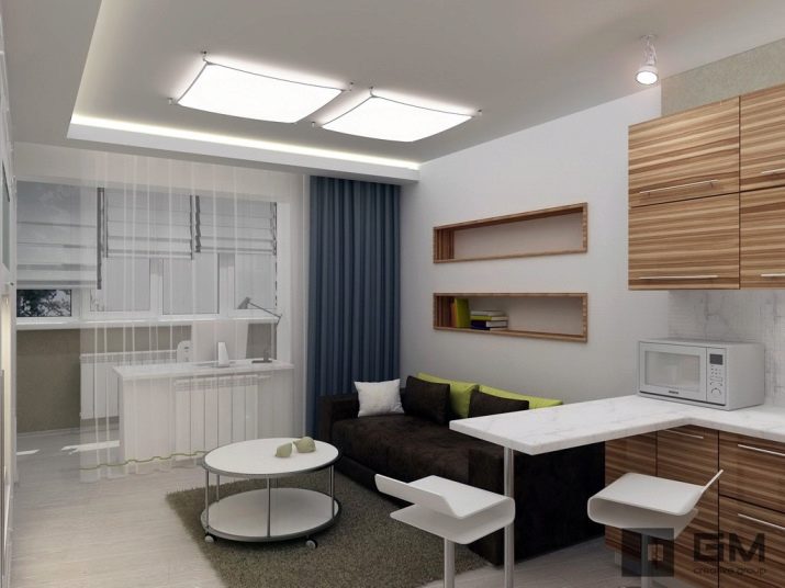وإذا لم تكن هناك شرفة في شقة من غرفة واحدة ، ولكن لوجيا ، فهذا حظ مضاعف. لأنه يمكن تقسيمها إلى جزأين وظيفيين. في واحد لتجهيز المطبخ ، والآخر – منطقة عمل. قسّم هذه المناطق فيما بينها بأقسام ذات باب. وبعد ذلك ستصبح الدراسة مريحة ومتينة ، وستصبح منطقة المطبخ مضغوطة ومتحركة..