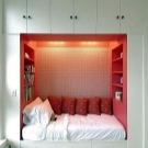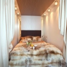 الأفضل هو التخلي عن الخزائن والأدراج الضخمة للكتان. سوف يشغلون مساحة كبيرة. يتم تنفيذ وظائفهم بشكل مثالي من خلال صناديق الأرائك الداخلية أو الأدراج الموجودة أسفل السرير. في بعض الحالات ، يتم تسييج الرصيف بالستائر أو المظلة. تقع الحوامل الخاصة بهم على السقف. يمكن ترتيب الستائر في شكل دائرة ، تحيط بالسرير أثناء النوم بحلقة ضيقة.