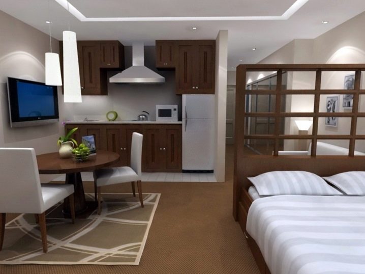 شقق الاستوديو تحظى بشعبية كبيرة اليوم. يتم تضمينها في مشاريع بناء المباني السكنية الجديدة. في الواقع ، إنها تمثل مساحة فردية يجب أن يكون فيها المطبخ وغرفة الطعام ، وغرفة معيشة كمنطقة ترفيهية مع تلفزيون ، ومنطقة عمل بها طاولة ، وكمبيوتر ، وقاعة مدخل ، وشرفة.
