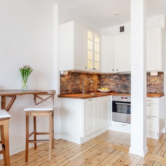 - لا تنسَ عزل منطقة الشرفة ، ودمج مساحة المطبخ معها ، في حين أنه يجوز استخدام عتبة النافذة كطاولة طعام أو طاولة بار عصرية ؛