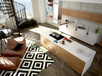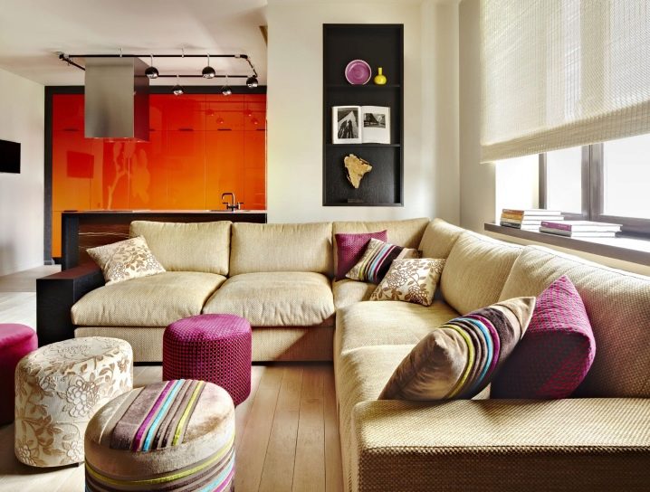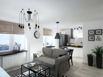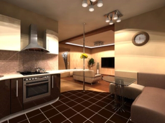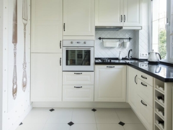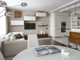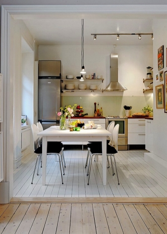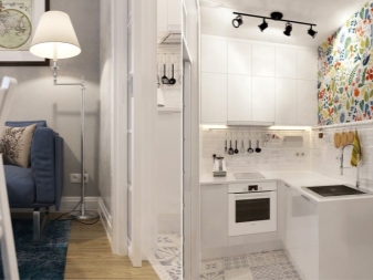 الخيار المثالي هو أثاث الزاوية مع خزائن معلقة. يمكن وضع الطاولة في منطقة المعيشة. الأثاث القابل للتحويل مناسب تمامًا للمطبخ. على سبيل المثال ، يمكن أن تتحول طاولة طعام صغيرة إلى طاولة طعام كبيرة تتسع لعدد كبير من الضيوف..