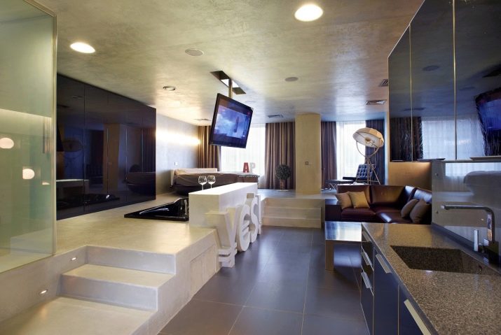تعتبر الشقة ذات التقنية العالية مثالية للأشخاص المحافظين الجادين الذين يحبون النظام في كل شيء ويعرفون دائمًا مكان كل شيء. تشبه شقة الاستوديو بهذا النمط رسمًا على طول المسطرة ، والتي تتميز بخطوط مستقيمة واضحة دون أدنى خطأ. لا تتسامح التكنولوجيا الفائقة مع أي ديكور على شكل سجاد وستائر. بدلاً من التول والستائر المعتادة ، من الأفضل استخدام الستائر أو الظلال الرومانية بظلال سرية..