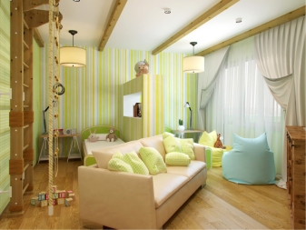 إذا كان لديك طفل ، فيجب أن تحتوي شقة الاستوديو الخاصة بك بالضرورة على مكان لمنطقة مخصصة للأطفال. يمكنك تحديد المساحة مسبقًا باستخدام مستويين. اترك الطبقة العلوية من الشقة بالكامل للحضانة.
