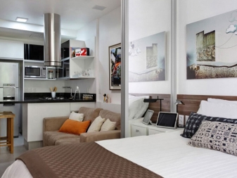 على أي حال ، لا أحد يأخذ منك الحق في اختيار أثاث لشقتك الاستوديو. لكن الجميع يريدون جعل شقتهم عملية قدر الإمكان وتشوش الحد الأدنى من المساحة..