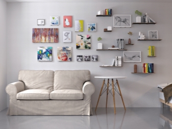 اللوحات طريقة جيدة لتزيين الجدران. بالنسبة لشقق الاستوديو الصغيرة ، تعتبر الصور الصغيرة على شكل مجمعات مثالية. تجنب اللوحات الكبيرة ذات الأنماط الهندسية. يسرقون الفضاء كثيرًا. بدلاً من اللوحات ، يمكنك تعليق الإطارات بالصور على الجدران ، وستضيف الراحة إلى الغرفة.