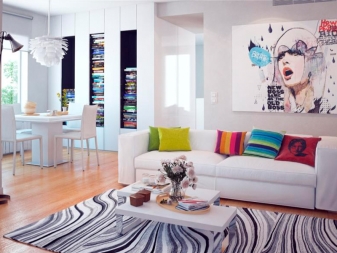 لا توجد شقة واحدة ، حتى أصغرها ، يمكن أن تكون مريحة بدون سجادة جميلة. ضع البساط في منطقة نومك أو غرفة المعيشة. اختر نماذج صغيرة بيضاوية أو مستطيلة ذات وبر ناعم. الرسومات الملونة والمطبوعات الزهرية غير مناسبة للمساحة في شقة الاستوديو..
