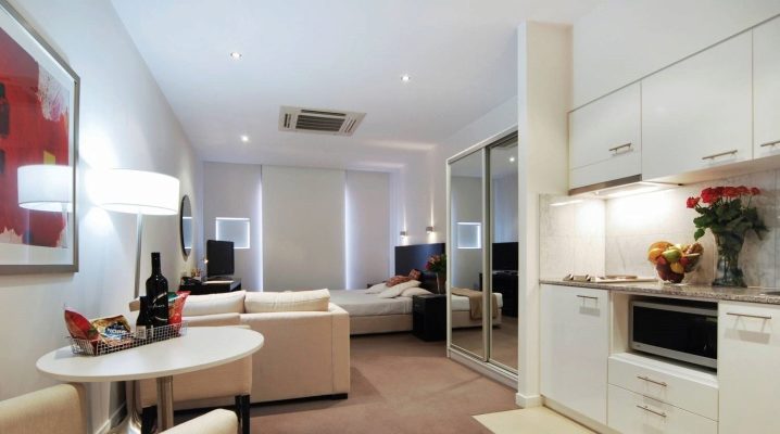 شقة الاستوديو هي غرفة واحدة كبيرة بدون أي أقسام. في هذه الغرفة ، من الضروري وضع عدة مناطق ، بما في ذلك المطبخ وغرفة الطعام ، وكذلك منطقة النوم وغرفة المعيشة. إذا كانت عائلة صغيرة تخطط لولادة طفل ، فعند ترتيب الأثاث ، يجدر التفكير في المكان الذي سيعيش فيه الطفل المستقبلي..