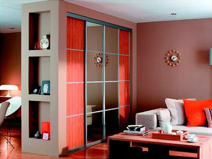 - خزانة. يجب أن تكون قطعة الأثاث هذه موجودة في كل شقة ، مهما كانت صغيرة. وبالتالي فإن خزانة الملابس المدمجة هي حل سليمان ، حيث تؤدي وظيفتين في وقت واحد – تخزين الأشياء وتقسيم الغرفة إلى مناطق. هناك العديد من أنواع الخزانات – يمكن أن تكون خزانة ملابس نصف قطرها ، على الوجهين – عندما يتم تخزين خزانة الملابس على جانب واحد ، وعلى الجانب الآخر ، تكون مجهزة بأرفف لأثاث المطبخ. هناك أيضًا دواليب قابلة للتحويل يتم فيها بناء سرير قابل للطي..
