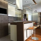 - مكافحة بار. سيبدو هذا القسم ، المجهز بأرفف معلقة أو حوامل كؤوس النبيذ ، جميلًا جدًا. هذا ليس حلاً وظيفيًا فحسب ، بل حلًا جماليًا أيضًا..