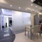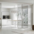 قواطع أو أبواب منزلقة مصنوعة من مادة شفافة. في أغلب الأحيان ، يتم تصنيع هذه الأقسام من الزجاج أو البلاستيك القوي جدًا. هناك طريقة أكثر تكلفة لتسليط الضوء على منطقة المطبخ من المساحة المشتركة لشقة الاستوديو وهي تثبيت أبواب منزلقة أو أبواب مقصورة بينهما. يمكنك أيضًا تعليق ستارة قماش. فقط القماش ، يُنصح باختيار نسيج خفيف – على سبيل المثال ، الأورجانزا أو الحجاب ، بحيث يكون هناك منظر جيد من خلاله. إذا كنت تريد بالتأكيد جعل القسم معتمًا ، فمن الأفضل ألا يكون الارتفاع الكامل للغرفة ، ولكن أقل قليلاً من ارتفاع الإنسان..