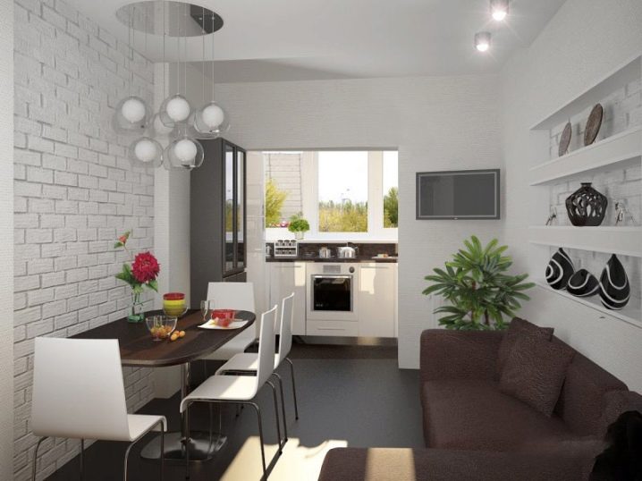 الأثاث الزجاجي مثالي لاستوديو صغير – سيوسع المساحة بصريًا. في غرفة ذات مساحة كبيرة ، تحتاج إلى اختيار المزيد من الأثاث الأساسي – على سبيل المثال ، منضدة مصنوعة من الحجر الطبيعي أو مادة تشبه الرخام أو الجرانيت.