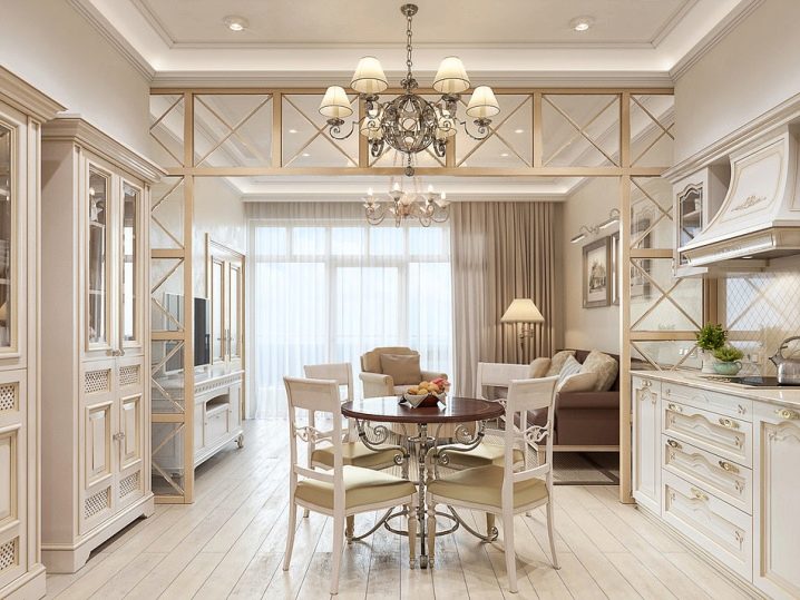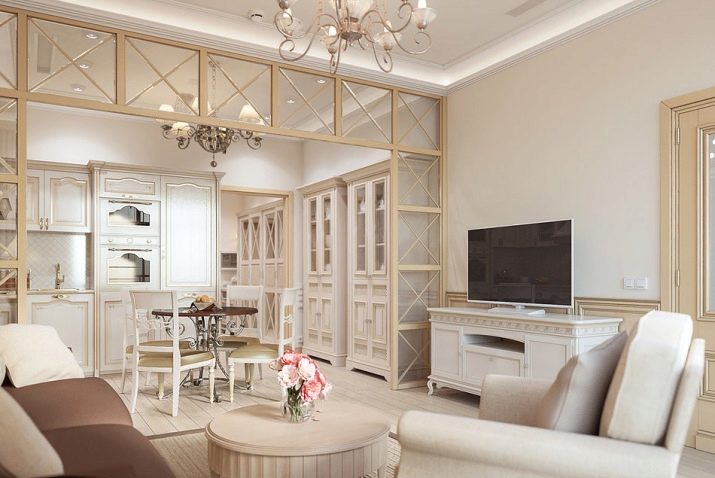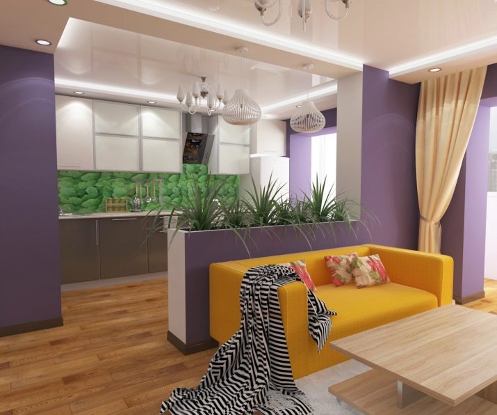 بالنسبة للشقق التي لا تحتوي على مثل هذا الجدار ، من الممكن إضافة أقسام منزلقة تفصل بين المناطق المختلفة. وهكذا ، تصبح الشقة المكونة من غرفة واحدة غرفة متعددة الأغراض ، وتتحول لتلبي احتياجات وراحة سكانها..