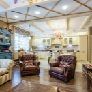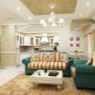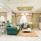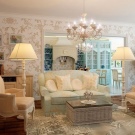 أسلوب “بروفانس” يعني عدد كبير من المفروشات الخفيفة وستائر الحجاب الرومانسية والخياطة والكشكشة على مفارش المائدة والمظلات. تمنح النافذة البانورامية ذات الجدار الكامل هذه الشقة مظهرًا رائعًا وأرستقراطيًا. يعزز هذا الانطباع الأثاث العتيق والأرائك والأرائك العتيقة. يؤكد السقف الممتد ذو المستويين على تهوية الغرفة.
