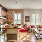 غالبًا ما تحتوي هذه الشقة ذات الطابقين ذات الأسقف العالية على غرفتي نوم ونافذة معبرة ومنطقة كبيرة من المطبخ – غرفة معيشة وتقسيم واضح لبقية المناطق..