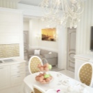 أما بالنسبة للمطبخ ، فمن الأفضل أن يكون مفتوحًا ، فهذا سيعطي المساحة مظهرًا مقتضبًا. الخيار الأفضل هو مجموعة مطبخ معيارية بها الكثير من الخزائن وثلاجة مدمجة وغسالة ملابس. سيؤدي هذا إلى إخفاء جميع الأساسيات عن الأنظار. يمكن تحديد منطقة المطبخ من غرفة المعيشة من خلال طلاء جدران منطقة المطبخ بلون أغمق عن طريق اختيار ورق الحائط المدمج في الشقة..