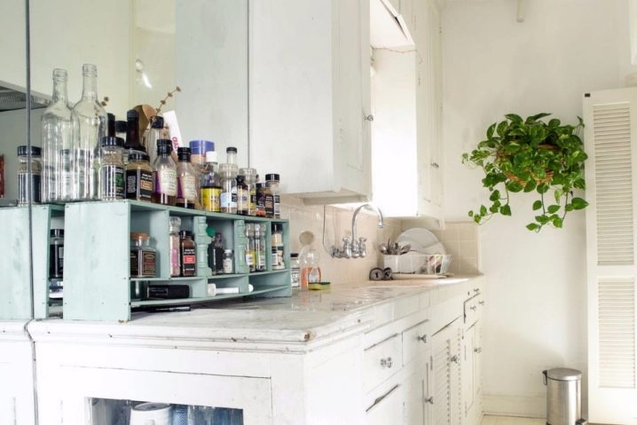 يفصل قوس رومانسي من اللوح الجصي منطقة المطبخ عن غرفة المعيشة. يتكون الأثاث في المطبخ من العديد من الأرفف والأرفف والخزائن ، وهو رث بشكل متعمد ومجهز بمقابض مجعدة جميلة. لتجهيز مثل هذه الشقة – استوديو ، تحتاج إلى بذل الكثير من الوقت والجهد ، بعناية وبكل قلبي أختار عناصر الديكور والأثاث. شقة لبوهيمي حقيقي ، حساسة للتقييمات وتقييمات النزلاء.