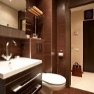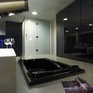 من الأفضل استخدام الطلاء لتزيين الجدران أو وضع بلاط لامع أو بلاط كبير على الأرض. غالبًا ما يتم استخدام الطلاء المعدني أو الشرائح كتصميم سقف عالي التقنية..