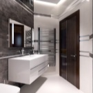 من حيث اللون ، يعتبر اللون الرمادي (الجرافيت ، والرمادي الفاتح ، واللون الإسفلتي) والأحمر البني من العناصر الرئيسية لأسلوب الدور العلوي. باللون الرمادي ، سيصبح تصميم الحمام جميلًا جدًا. اليوم ، لدى جميع مصنعي بلاط السيراميك تقريبًا في كتالوجاتهم نسختها الرمادية مع لمعان معدني أو برونزي..