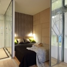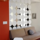 - عند تقسيم مساحة شقة الاستوديو بمساحة 50 مترًا مربعًا أو أكثر ، ستكون خزانة الملابس الكبيرة الموضوعة بشكل عمودي على الجدران الرئيسية بمثابة خيار جيد للقسم. هذا التصميم يقضي على جميع الصور النمطية ويبدو غير عادي ؛