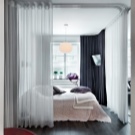 باعتبارها الخيار الأبسط والأكثر ميزانية لتقسيم المناطق ، يمكنك استخدام ستائر تعتيم عادية مثبتة على القضبان باستخدام lurex.
