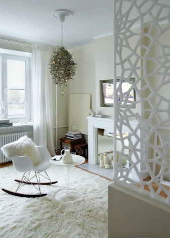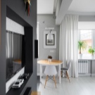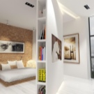 في شقة الاستوديو ، سيكون استخدام الأقسام هو الحل الأمثل. يمكنهم أداء وظائف مختلفة – لتحديد مساحة ، أو أن تكون جزءًا من نظام تخزين ، أو ببساطة أن تكون عنصرًا من عناصر الديكور..