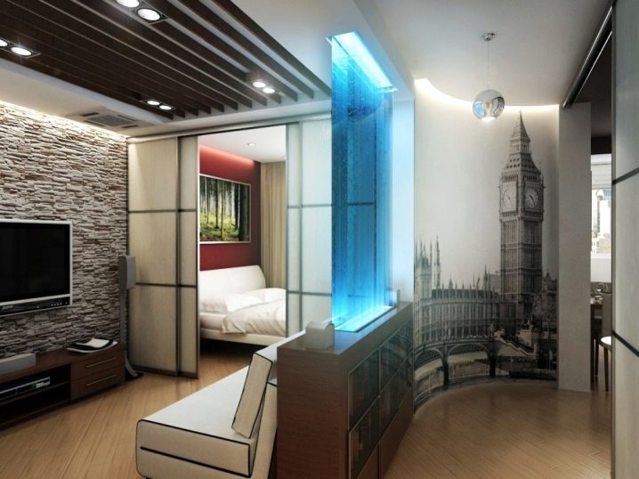 تبدو خلفيات الصور أنيقة في شقة من غرفة واحدة. قبل شرائها ، يجب أن تقرر الجدار الذي سيتم وضع الرسم عليه ، وسيكون الجدار الرئيسي. بفضل المجموعة الواسعة ، يمكنك اختيار خيارات المناظر الطبيعية والسريالية والعمودية لكل ذوق ولأي تصميم داخلي.