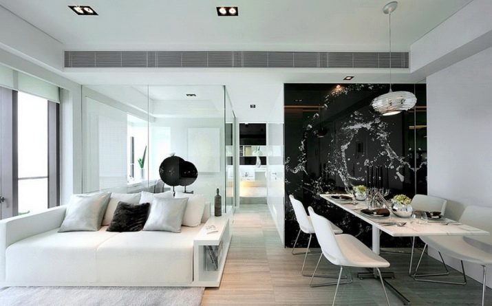 عند إنشاء تصميمات داخلية لغرف صغيرة ، يجب أن يكون المرء حذرًا من مجموعات مشرقة مثل الأزرق والأخضر والأرجواني والأصفر. إنها جميلة من تلقاء نفسها ، ولكنها مناسبة فقط للمساحات الكبيرة. من الأفضل أيضًا عدم استخدام مزيج الأسود والأبيض الكلاسيكي لشقة من غرفة واحدة..