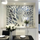 لذلك ، يمكن للهياكل المرآة وزخارف الجدران مع ورق الحائط الفاتح أو الجص أن تضيف اتساعًا إلى المساحة. يجب تجنب الأقسام الضخمة ، ويمكن استبدالها بالستائر القطنية ، وجميع أنواع الشاشات التي ستمنح المساحة الإضاءة وتقربها بصريًا قدر الإمكان من شكل المربع.