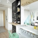 الرابعة, يفترض مشروع شقة صغيرة فقط وضعًا واضحًا للاتصالات في منطقة الحمام والمطبخ ، ويمكن تزيين باقي المساحة حسب رغبتك. أي نمط مناسب لترتيب مثل هذه الشقة ، ويكون تقسيم الغرفة إلى مناطق تعسفيًا لدرجة أنه يمكنك بسهولة نقل الأثاث وإنشاء تصميم جديد. بالإضافة إلى ذلك ، تتطلب الشقة الصغيرة استثمارًا أقل بكثير في الإصلاحات من غرفة كبيرة..