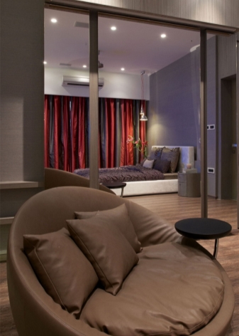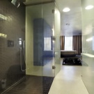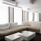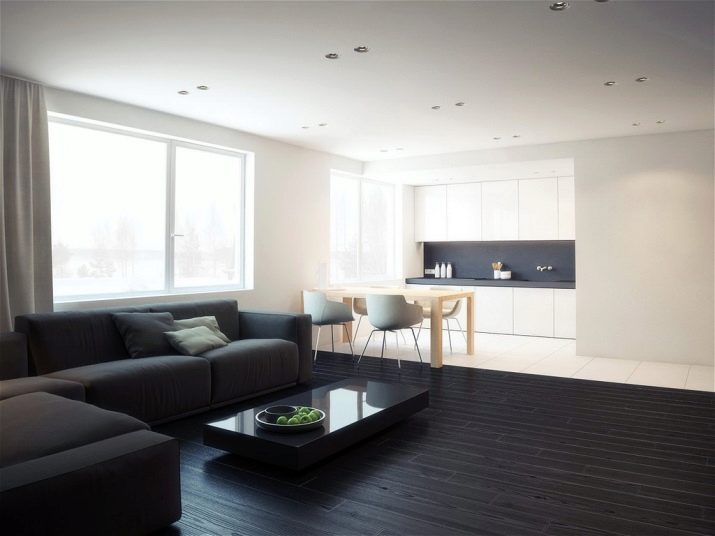 المكان الرئيسي في هذا النمط هو الإضاءة. لهذا ، غالبًا ما لا تكون النوافذ مغطاة بالستائر – يتم استخدام الستائر والستائر السميكة في الليل ، ويتم استخدام الزجاج المصنفر.