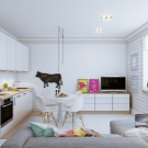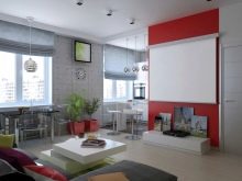- يخلق عدم وجود أقسام الحاجة لتقسيم الغرفة إلى مناطق. يمكن القيام بذلك عن طريق تغيير غطاء الجدار وتركيب الشاشات وتركيب السجاد. يمكنك أيضًا تقسيم الغرفة بالأثاث وتجهيزات الإضاءة والأسقف والأرضيات متعددة المستويات..