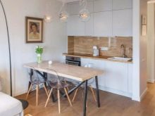 - بالإضافة إلى التصميم ، من المهم التفكير في بيئة العمل: كيف سيكون من الممكن التنقل في جميع أنحاء الغرفة ، وما إذا كان السكان سوف يلمسون الأثاث عند المشي ، وأين يمكن العثور على مساحة تخزين إضافية. من المهم التفكير في نظام العادم بحيث تنتشر روائح المطبخ بأقل قدر ممكن في المناطق السكنية..