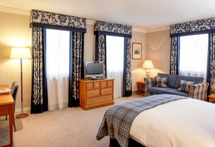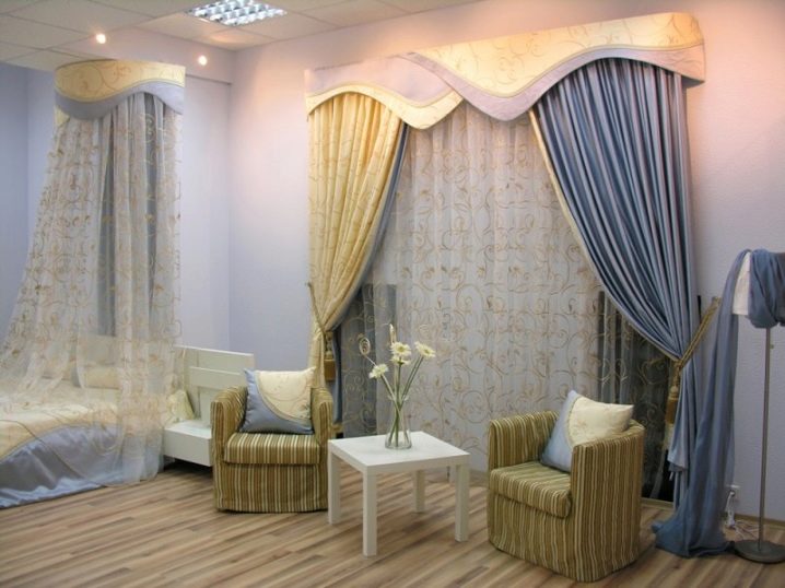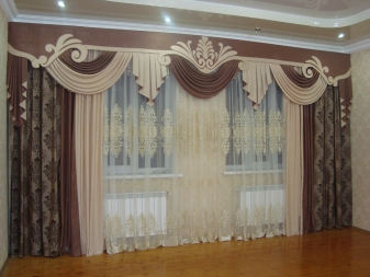 الشيء الوحيد الذي ينصح به المصممون هو عدم الانغماس في مزيج الظلال. نادرًا ما يكون Lambrequin المصنوع من ثلاثة ألوان أو أكثر خيارًا جيدًا..