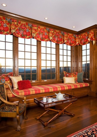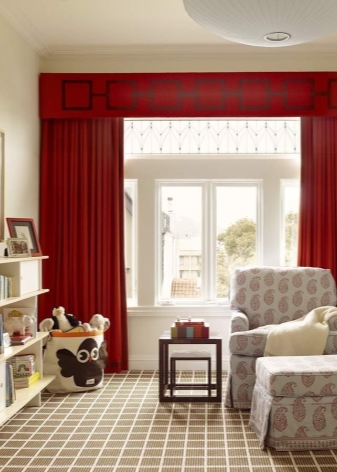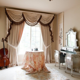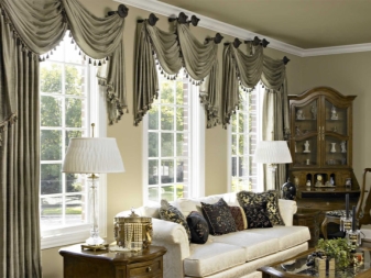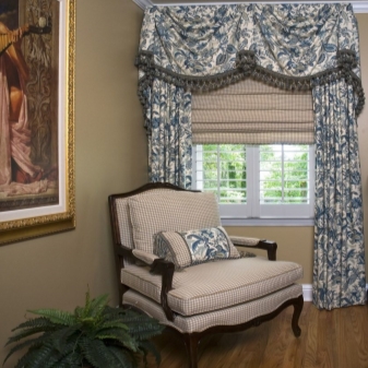- الخيارات الأكثر شيوعًا هي نماذج لينة, سهل التركيب. في الأساس ، يتم استخدام النسيج نفسه للخياطة ، والذي تصنع منه عناصر زخرفة النوافذ الأخرى. هذه اللمبريكين مثبتة على الستائر أو الكورنيش.