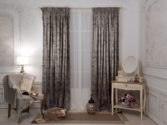 يجب أن تتكون الطبقة العليا من الستائر لنافذة غرفة المعيشة من الحرير الكثيف أو المخمل. في الوقت نفسه ، قد لا تحتوي الستائر على أنماط أو أنماط. خيار مثير للاهتمام هو تعليق الشبكة في خطوط. يمكن إمساكها بمقابض زخرفية أو تركها مسطحة. كل هذا يتوقف على تفضيلات السكان أنفسهم.