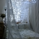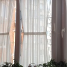 - شبكة كبيرة منفوشة بالإضافة إلى الستائر السميكة التي ستغلق النافذة في الظلام ستبدو جميلة جدًا. لا يلزم تعليق الشبكة بشكل مستقيم ، يمكنك استخدام ستارتين ، والتي سيتم ربطها بالستائر بأربطة.