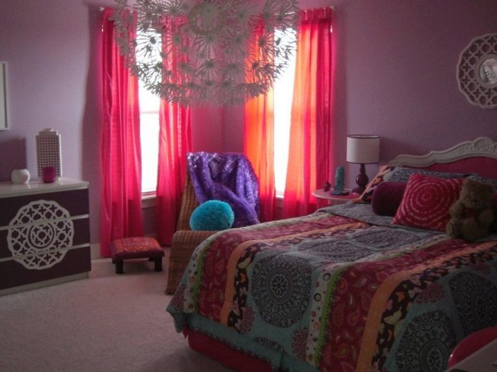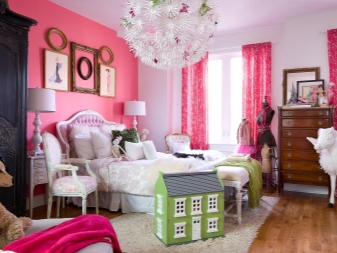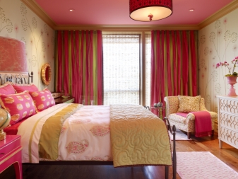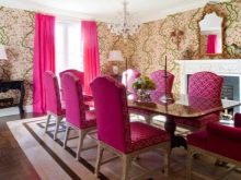 - للغرفة في ظلال lingonberry الوردي يمكنك أيضًا اختيار الستائر الوردية بأمان.