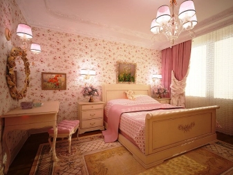 إذا كان الزوجان يعيشان في غرفة النوم ، فمن الضروري مراعاة تفضيلات ذوق الرجل. غالبًا ما لا يكون لديهم أي شيء ضد اللون الوردي المترب الصامت ودرجات الخوخ..