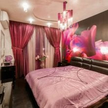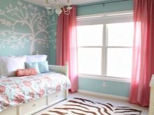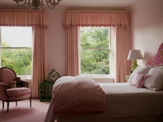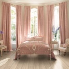 - ستكون فكرة عظيمة مزيج من الستائر الوردية الفاتحة مع جدران النعناع أو اللافندر. هذا التصميم مثالي لتزيين غرفة النوم..