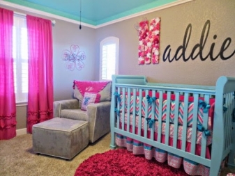 إذا كان ورق الحائط في الحضانة ساطعًا ويحتوي على جميع أنواع الأنماط والأنماط ، فيجب أن تكون الستائر بسيطة وليست مثقلة بالديكور. لا تستخدمي الألوان “الحمضية” الزائدة عن التشبع لتزيين غرفة الأطفال ، لأنها يمكن أن تؤثر سلبًا على الجهاز العصبي للطفل..