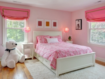 - في حالة اختيارك تشطيب الحائط للستائر الوردية التي تم شراؤها بالفعل ، نوصي باختيار الظلال التالية – وردي شاحب ، كراميل ، كريم ، رمادي فاتح ، أزرق باهت وبالطبع أبيض.