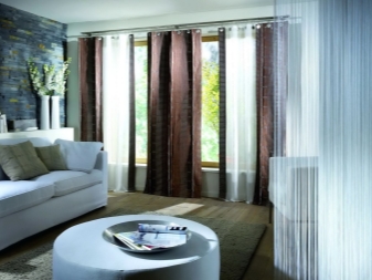 يشتمل التصميم الداخلي الكلاسيكي لغرفة المعيشة على تركيبة من ستائر التول والتعتيم. يناسب هذا الخيار أي تصميم للشقة ، بغض النظر عن النمط المختار. لكن الأفكار المعاصرة لتصميم الغرف لا تعرف حدودًا. البساطة والبساطة رائجة اليوم. لذلك ، حتى التول العادي بدون لامبريكين وستائر سيبدو أنيقًا ومتناسقًا في أي غرفة..
