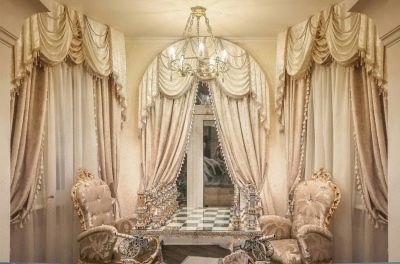 تبدو القاعات متعددة النوافذ جيدة مع التول ذي الطبقتين ، والذي يعلوه لامبريكين مع كشكش. على الرغم من أن الكثيرين يحاولون التخلي عن الهياكل الكثيفة الضخمة في تصميم المنسوجات ، إلا أن أسلوب الروكوكو المهيب لا يزال يحظى بشعبية لدى العملاء..