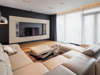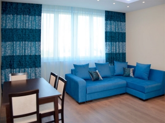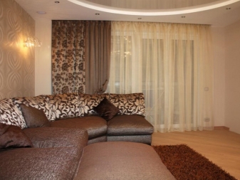 غرفة المعيشة – الغرفة التي يقضي فيها سكان الشقة معظم وقتهم. لذلك ، دائمًا ما يستغرق الجزء الداخلي من القاعة الكثير من الوقت والجهد والمال. من الصعب بشكل خاص العثور على ستائر جيدة ، والتي بدونها يمكن أن تفقد هذه المساحة الراحة بسهولة..